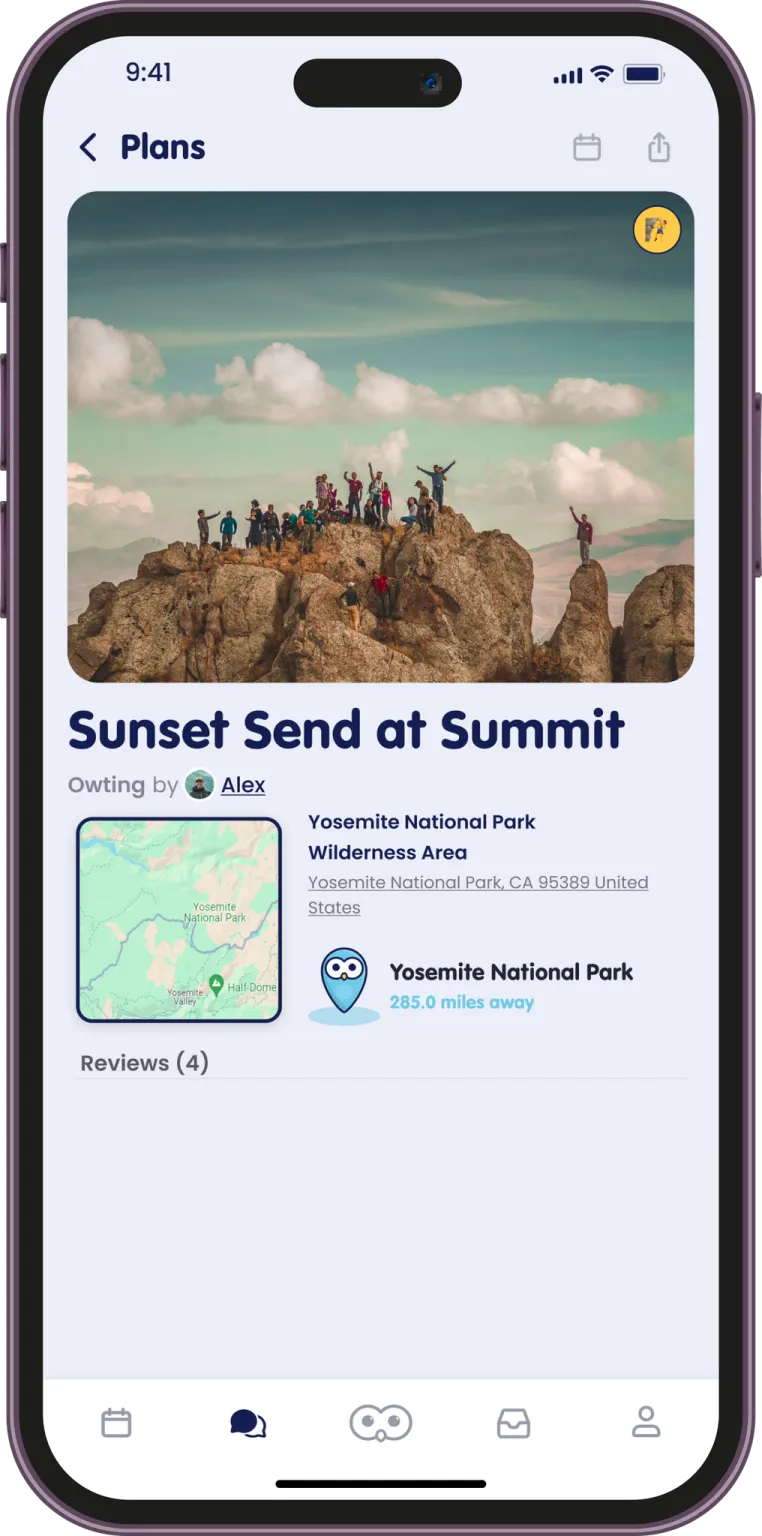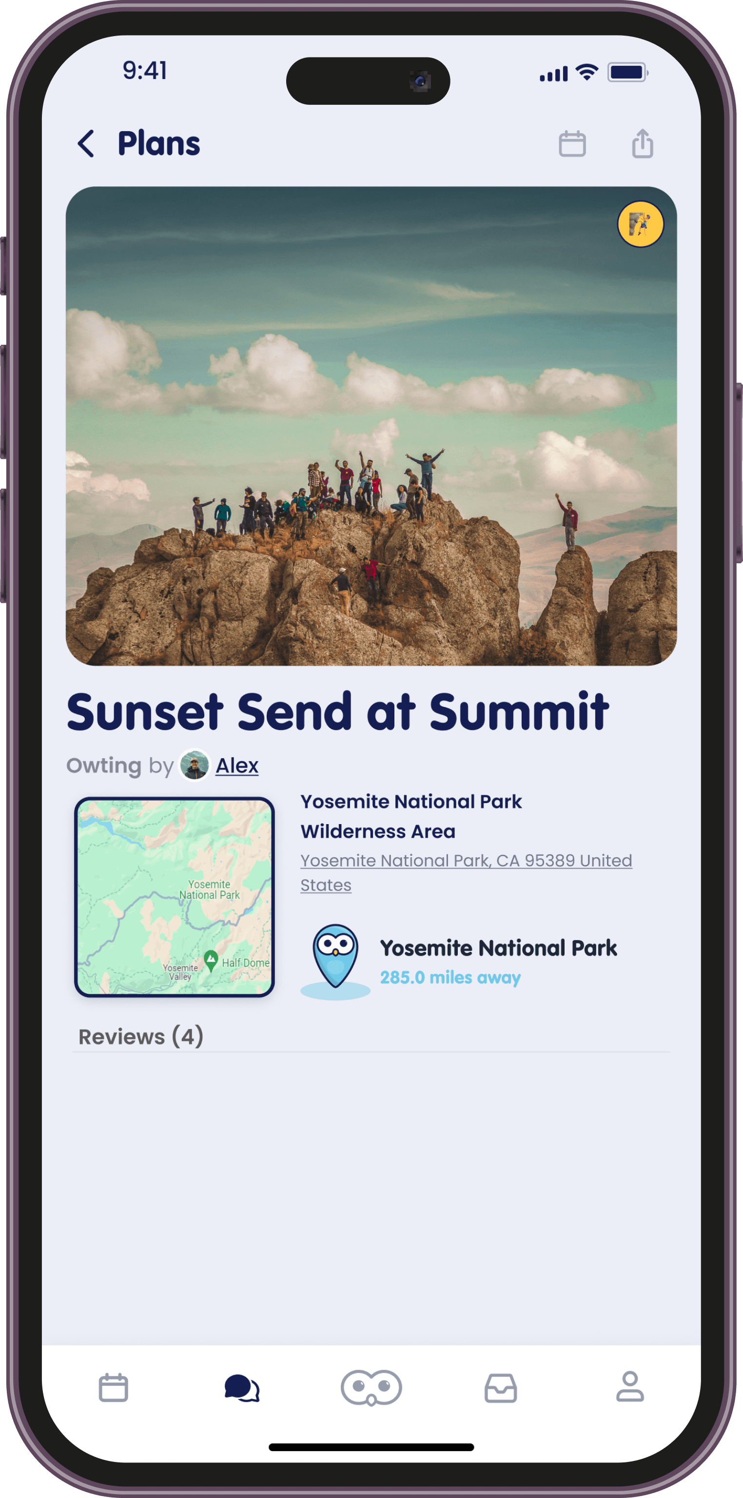 From sunset hikes to game nights - host the experiences people won't forget. Create detailed events with locations, times, guest lists, and RSVPs.